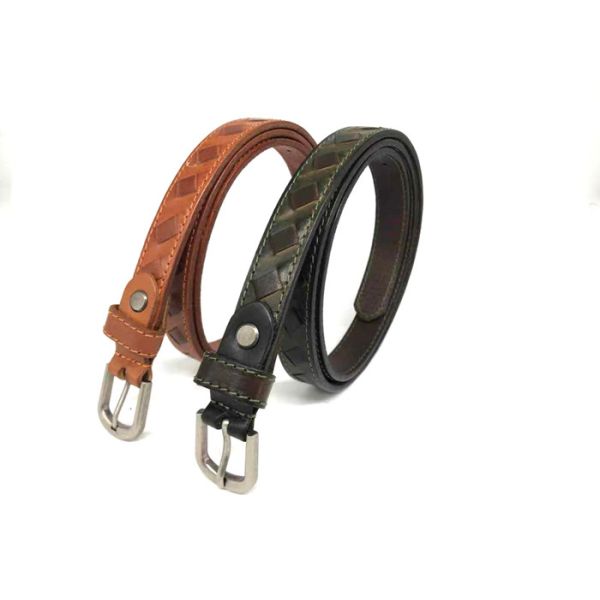 Womens Handmade Full Grain Leather Belt with Single Prong Buckle