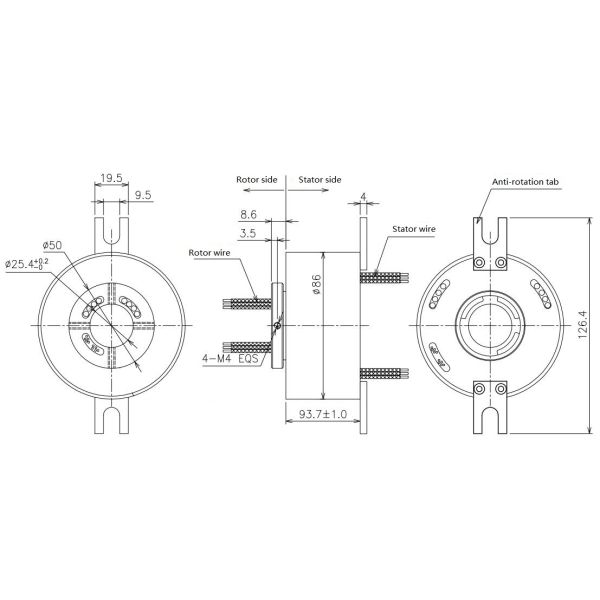 ECN Series slip rings feature a 25.4 mm through bore,Aluminium