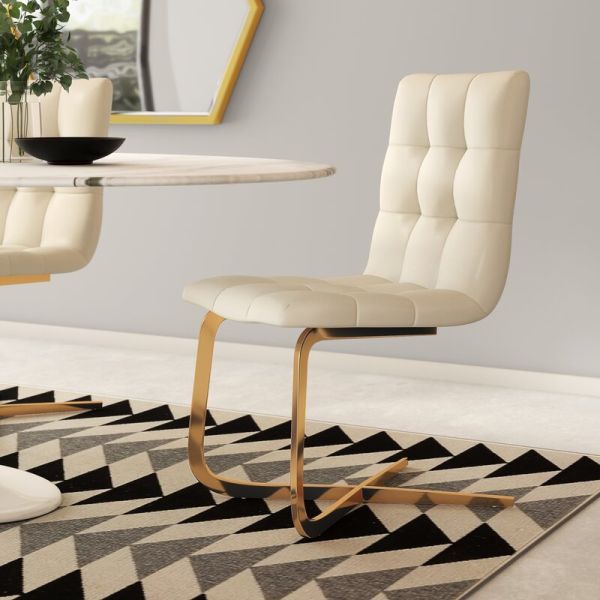 Modern Leisure 910mm Gold Metal Frame White Leather Chair for Living Room