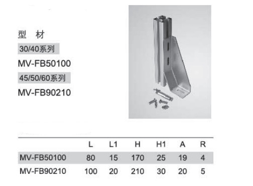 application | For the base support of profile support, the size is selected according to the profile size, the connecting bolts and nut blocks and expansion bolts shall be provided separately. |