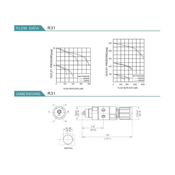 Outlet Pressure Ranges: 0~25, 0~50, 0~50,0~250,0~500psig