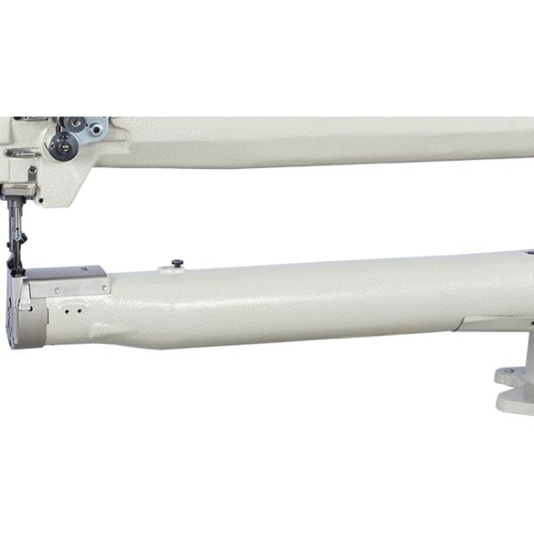 This is an extended sewing machine, a customized model, suitable for sewing special materials. The arm length can be selected in sizes (450mm, 500mm, 600mm, 800mm, 1000mm). Pneumatic presser foot lifting device, servo motor, automatic The presser foot is lifted and the needle is automatically fixed up and down.