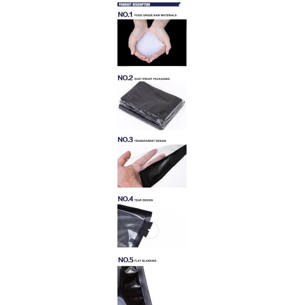 | Name: | Food Grade Materials Heat Seal Resealable One Side Black PE Vacuum Food Storage Bags |