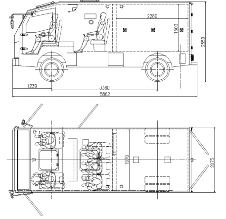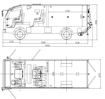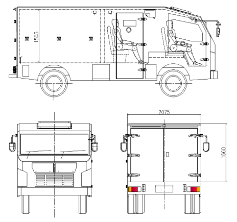 The whole vehicle is bulletproof on all sides (cockpit and escort cabin), and the fuel tank, battery, and water tank are bulletproof;