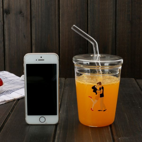 Heat Resistant Glass Drinking Cup with Straws Travel Tumblers for Coffee, Juice