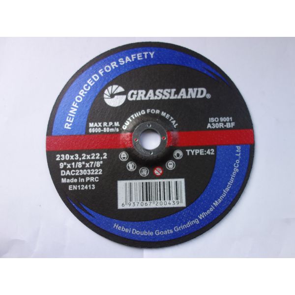 Grassland Metal Cutting Discs are manufactured using with tough aluminum oxide, heat-treated aluminum oxide , monocrystalline fused alumina (SA) or silicon carbide abrasive grain and fibreglass reinforcing and resin bonded to provide both safety and optimum cutting performance. Extra Thin Cutting Discs are a superior quality China manufactured range of extra thin cutting discs produced to MPA Safety standards.Thin Discs with a 1.2mm thickness permit fine cutting where necessary on stainless steel and high grade metals,extremely fast cutting with sharpness ,minimal vibration for more comfortable working,