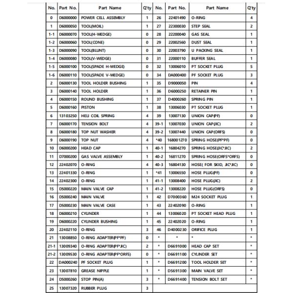 Description: D6691500 Hydraulic Breaker Service Kit