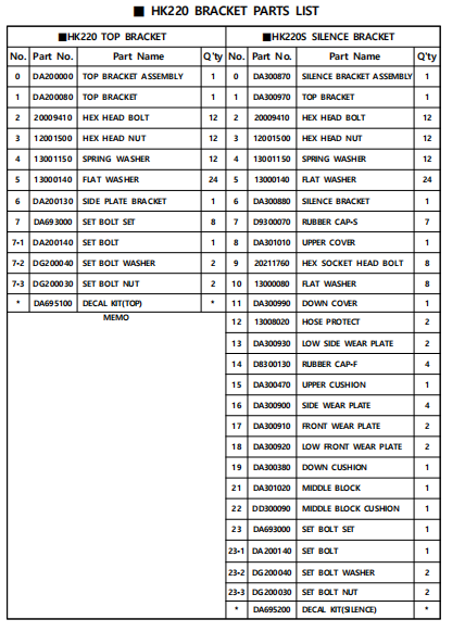 | Product name | DA691520 Hammer Seal Repair Kit Fits HK220 BHI Hydraulic Breaker |
