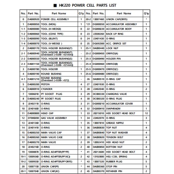 HK220 Tool Kit Parts List: