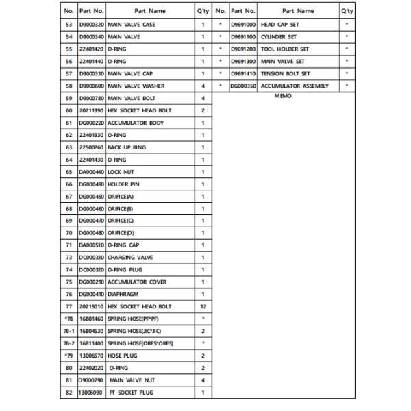 Description: D9691500 Hydraulic Breaker Service Kit