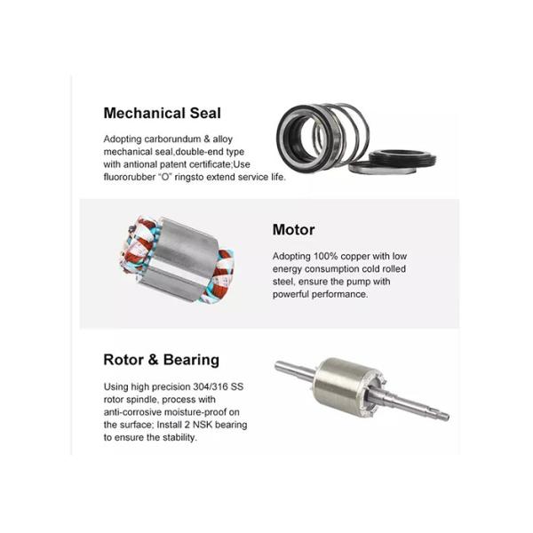 | Motor | Adopting 100% copper with low energy consumption cold rolled steel, ensure the pump with powerful performance |