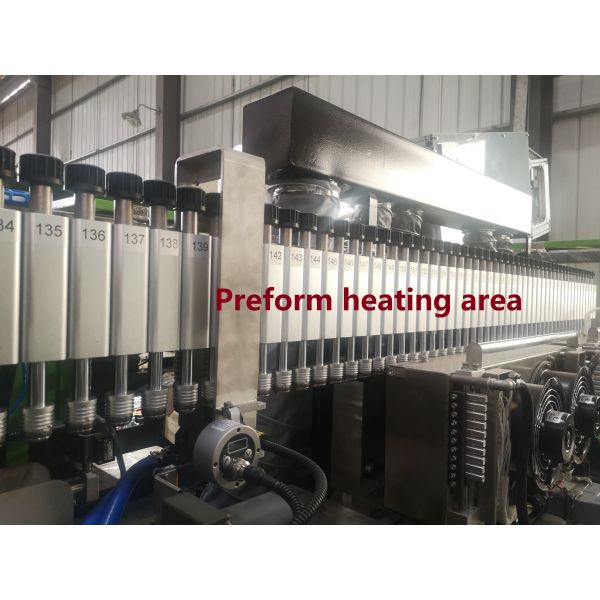 Preform heating system is same with the rotary machine,the built-in continuous rotating infeed system effectively reduces the space preform is hanged and heated without flip over,the consistency of preform position streamlines the process.