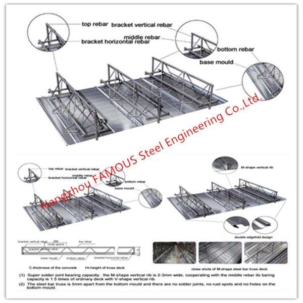 While FASEC Rebar-truss triangle welded metal decking system adapts rapid construction requirements of the main steel structure and provide fast work procedures. It can save a lot of construction time compared to traditional floor decking system. It can also improve the rigidity of the floor and save the amount of steel and concrete, so as to reduce the project budget.