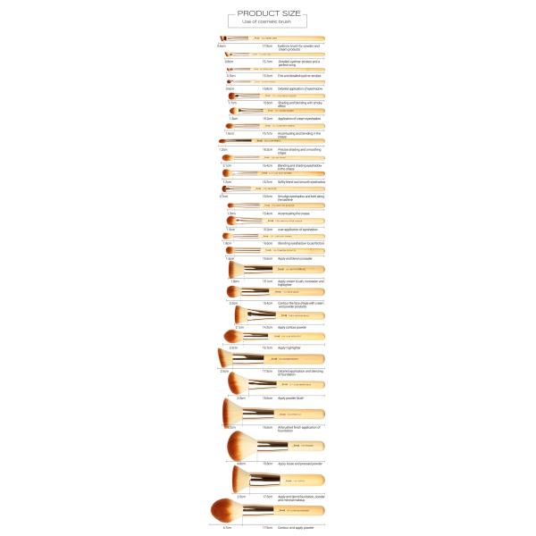 | 5 | 106 | Powder | 15.8cm | 4.8cm | Premium Synthetic Hair | Bamboo | Apply loose and pressed powder |