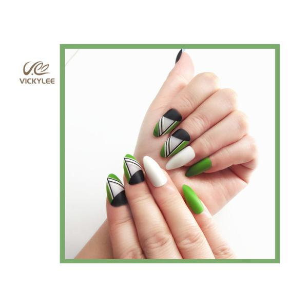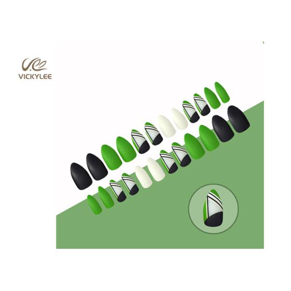 ABS Mixed Printing OEM ODM Green Stiletto Nails Long Coffin Shape