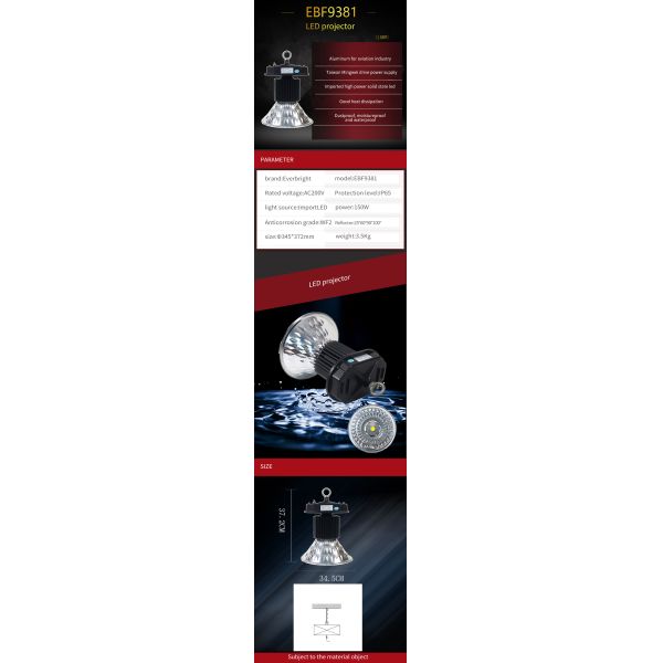 Industrial 150W LED Warehouse Lighting 220V IP65 High Bay Lamp