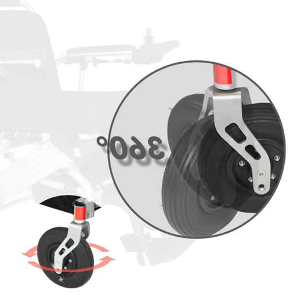 The front pressure folding way, the portable folding electric wheelchair design is exquisite, when folding only need to release the fixing mechanism, the back of the chair forward pressure and folding wheelchair gently.