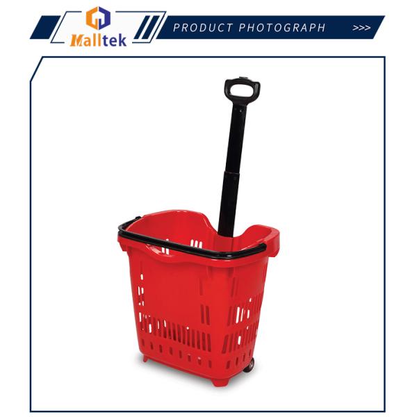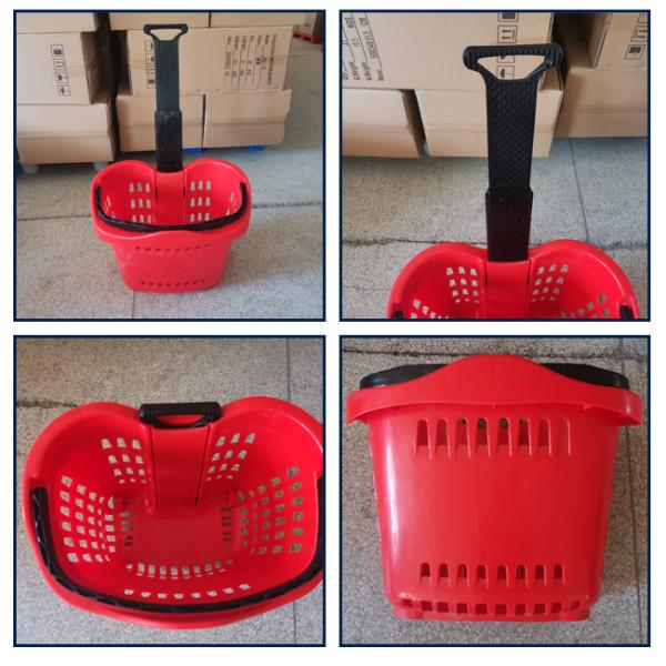 Telescopic Handle Store Plastic Rolling Basket With Two Wheels