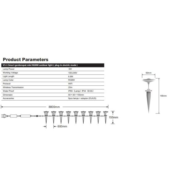 8.8 meters, work with adapter, plug-in electric power supply, no