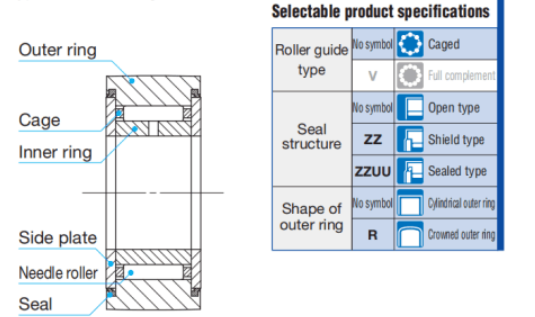 Needle roller bearings are rotational motion bearings in which a thin needle-shaped roller is incorporated into a rolling element. They have a low cross-section height and high load capacity compared with ball bearings. Being small, needle roller bearings contribute to reducing overall machine size, and are thus widely used in various appliexcavatorions such as automobiles, motorcycles, printing presses, industrial robots and construction equipment.