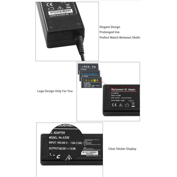 HReplacement HP 65W Laptop AC Adapter 18.5V 3.5A 4.8*1.7mm for HP Laptop Compaq