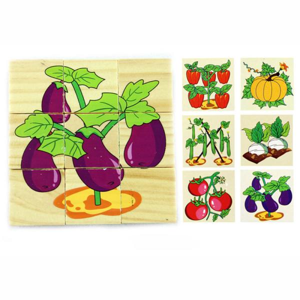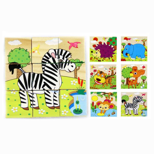 Wooden Cartoon Animal Puzzle Toys 6 Sides Wisdom Jigsaw Early Education Learning Toys for Children Game 9pcs Single 3D Puzzle