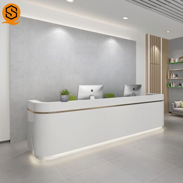 | Product name | Custom LED Logo Modern White Shopping Mall Solid Surface Curve Airport Reception Desk |