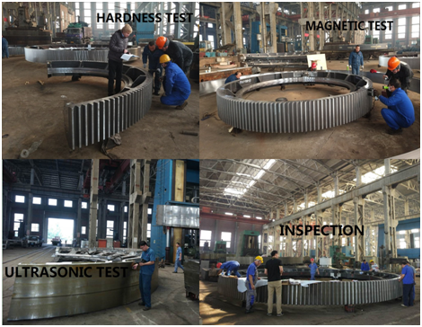 Girth Gear | (1)GS42CrMo4Alloy Steel (corporate proprietary standards) HB 220~240 (2)semi-structured, Y-Spoke | (1) outer steel refining (R-H argon and vacuum treatment) (4)rough hobbing, release time, repair the joint surface, then fine