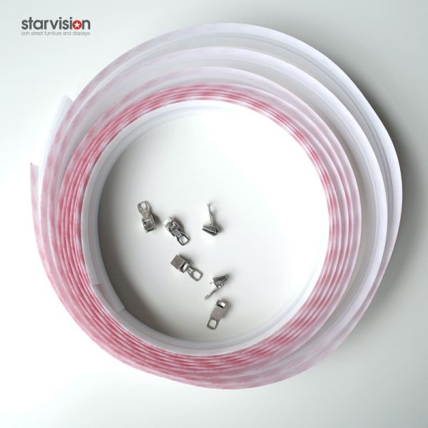 Our poster zipper tape allow customer to change the scrolling posters more flexible and faster. zipper with slider, 100meter per roll for sale, MOQ 20 rolls