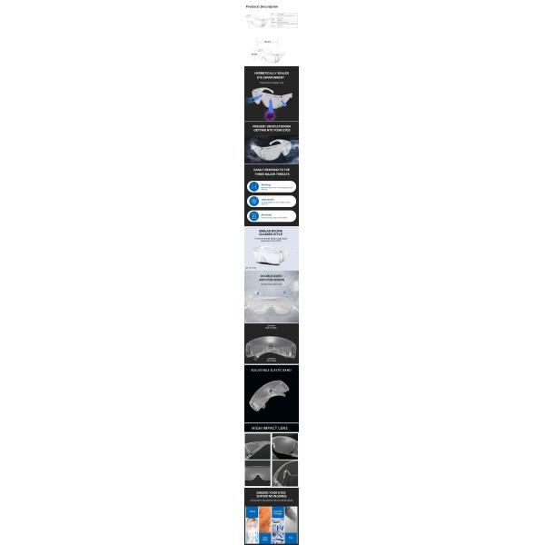 Anti Fog PPE Medical Protective Goggle Eyewear Clear PC 80cm*34cm*57cm