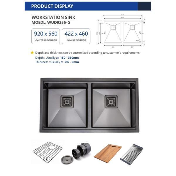 The overall dimensions of the WUD9256-B Stainless are 920 x 560 x 220mm and a 970mm minimum cabinet size is required. This sink also features a stain, heat, and scratch resistant surface; it comes fully insulated and equipped with sound dampening pads. All sinks are covered by our limited lifetime warranty; your satisfaction is guaranteed.