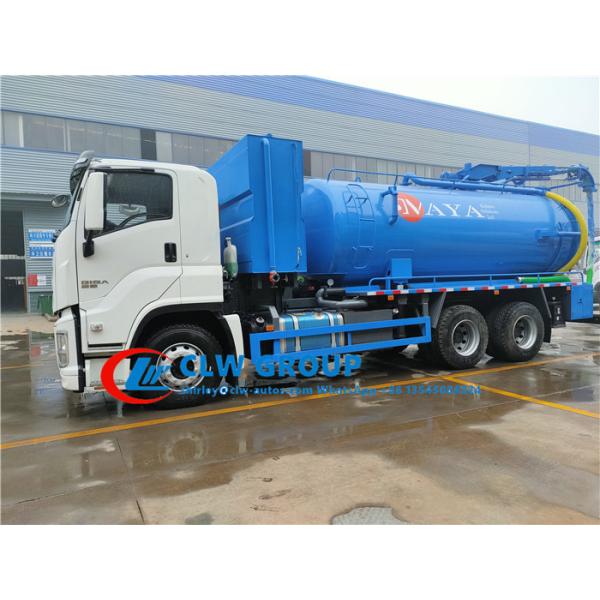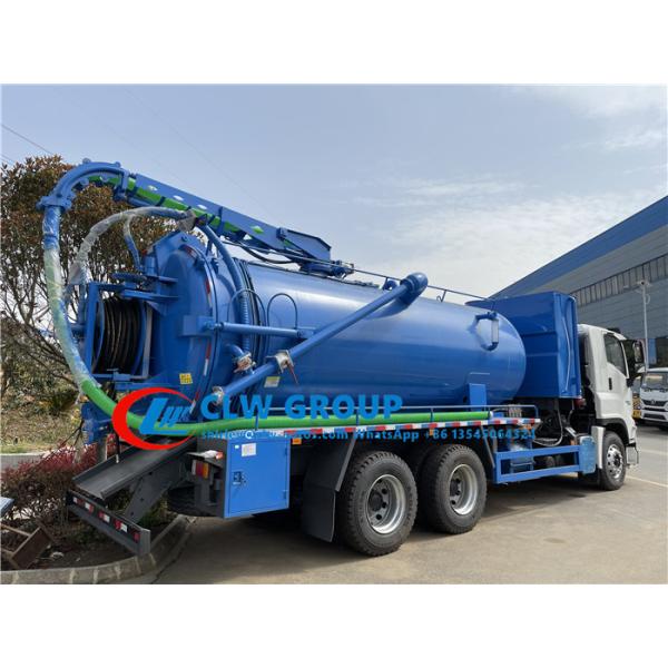 Isuzu GIGA 6X4 vacuum sewer jetter truck comes with Isuzu chassis, wheelbase: 4565+1370mm, vehicle size: 9850*2500*3850mm, clean water tank 4 m3, 304 stainless steel, 3mm thick, each on the left and right is protected against water ingress. With measuring tube, Pinfu 420 flow high-pressure pump, sewage tank 15 m3, 6mm thickness, 4 baffles, baffle sealing ribs, Haosei 204 water ring pump, the tail 220 of the pneumatic blowdown, the tail 100 of the blowdown There is a sewage pipe on the left and right sides of the tank body, with guardrails on the top of the tank, 10 meters suction pipe with hydraulic boom installed, with remote control, platform under the tank, built-in roof, rear cover can be opened, 4 locks, tail The reel is enlarged. Accessories: 200m high pressure pipe, 10 combined nozzles.