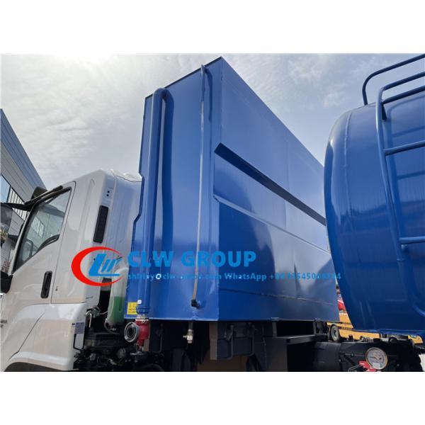 Isuzu sewer jetter trucks are mainly used for sewage cleaning and suction. The main special devices are vacuum pumps and tanks. The overall dimensions of the tank body are (straight section length×diameter) (mm): 5400×2150, in which the front section of the tank body is a clean water tank (the straight section length is 2400mm); the rear section is a sewage tank (the straight section length is 3000mm). The two tanks are independent and cannot be fully loaded at the same time. The clean water tank is used for the cleaning function, and the sewage tank is used for the dirt suction function. The effective volume of the clean water tank is 7.5 cubic meters, the medium: water, the density: 1000 kg/m3; the effective volume of the sewage tank is 9.3 cubic meters, the medium: liquid sewage, the density: 800 kg/m3.