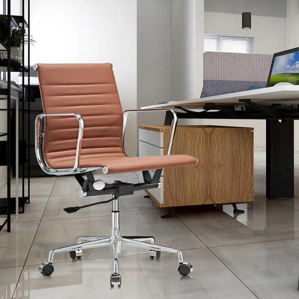 Brown PU leather alloy base low back office chair