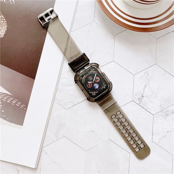 your products Suitable for Apple watchband apple watch new silicone watchband transparent integrated TPU with protective shell wristband shipping by air