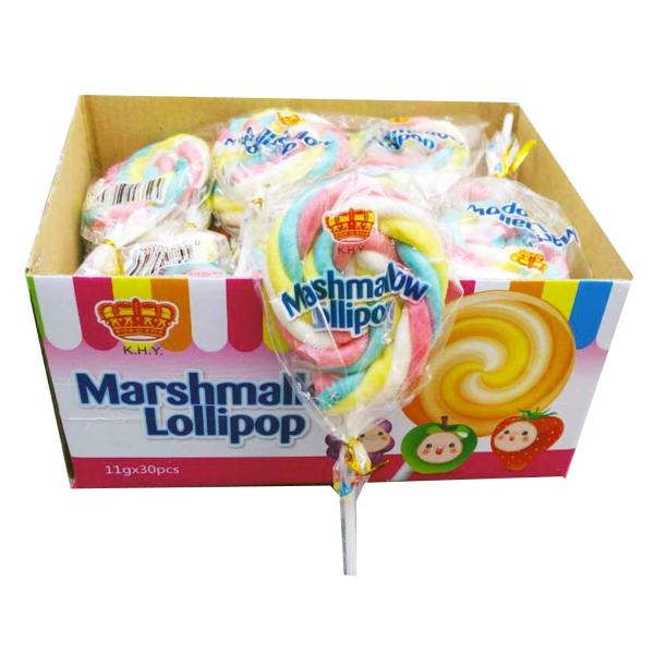 Wholesales candy 11g Lollipop shape sweet marshmallow Halal candy