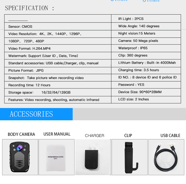 3. Built-in 4000mAh battery, 12 hours video recording(1920*1080 30P)