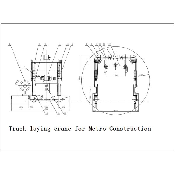 The metro track laying machine is mainly used in the track laying and maintenance of metro construction. It is a new product independently developed by our company. The product can realize the height adjustment of the whole machine and the change of walking span by using the hydraulic system drive. The height adjustment range of the whole machine is 3158mm-3808mm, and the span adjustment range is 3000mm-3900mm. It is suitable for the area below 2000m. The track laying machine can be used for two sets of joint operation to complete the 25m track laying at the same time, and can also be used for lifting concrete and other single items separately