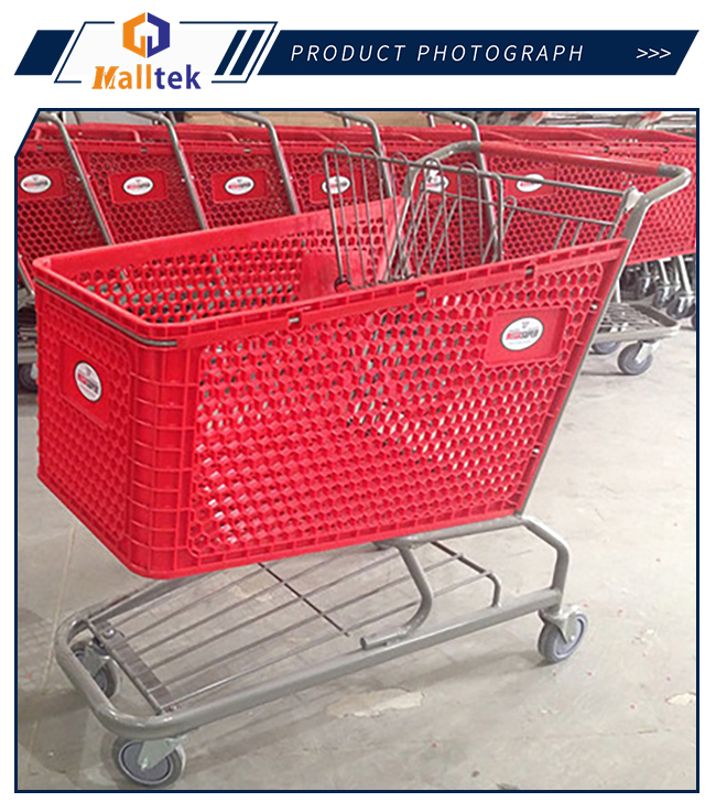 Supermarket Plastic Shopping Trolley Cart With Wheels