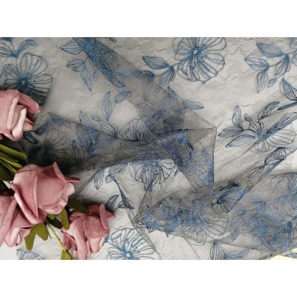 -Floral Tulle Mesh Embroidered Lace Fabric Fashion Dress Voile Embroidery can meet the requirement of OEKO-Tex Standard 100 .
