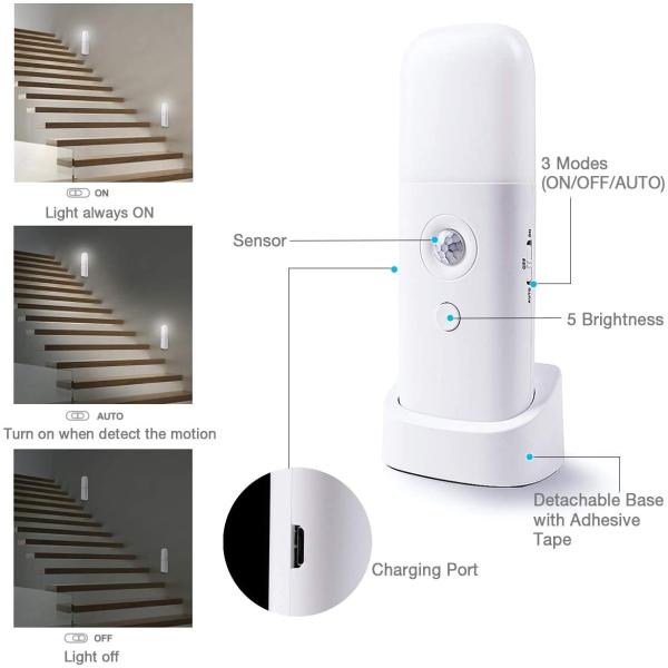 Motion Sensor Night Light Indoor USB Rechargeable Bedside Lamp Portable Adjustable Brightness Nightlight