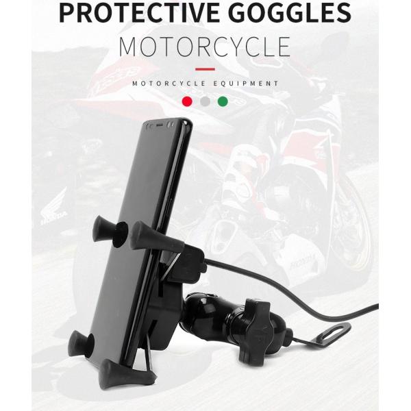 Motorcycle phone mount Keep your mobile phone or GPS charged all the time with built in 5V 2.4A USB charging port. Simply connect the wires to the 12-85V battery of the motorcycle or electric bike and keep your gadgets up throughout the journey. The waterproof cover of the slot will keep the charging port away from rain and dust.The phone mount can be adjustable from 3.5 inches to 6.5 inches, so you can use our motorcycle phone holder for almost all the smartphones including iPhone XR Xs Max Xs X /8 Plus/7/7 Plus/6/6 Plus/6S/6S Plus/5/5S/5C/SE, Samsung Galaxy S8/S8 Plus/S7/S7 Edge/S6/S6 Edge/S5/S4/S3, LG, HTC, Nexus and GPS navigators. Our motorcycle phone mount is crafted from high quality, sturdy and durable ABS plastic for years of worry free use. The gear mechanism, one touch lock/release key and flexible nylon clamps firmly hold your smart phone, regardless of sudden shocks and vibrations, while giving full access to the screen, all the buttons and ports.