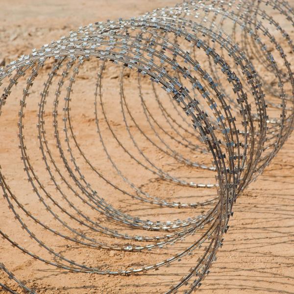 Razor wire is also named concertina coils or razor type barbed wire. it is a kind of modern security fencingmaterials, made of hot-dipped galvanized steel sheets or stainless steel sheets. And we can produce all kinds ofrazor barbed wire such as straight type razor wire, concertina coils, crossed type and flat type etc