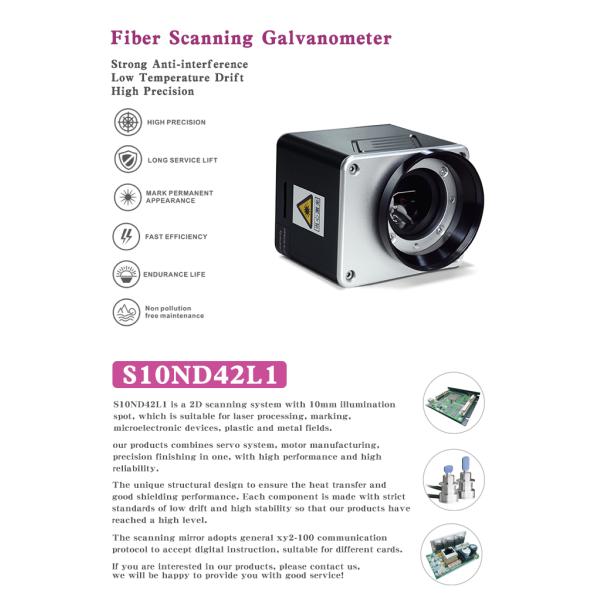 • S10ND42L1 is a 2-dimensional scanning system with 10mm incident light spot, widely used in laser processing, laser marking, laser welding, 3D printing and other fields;