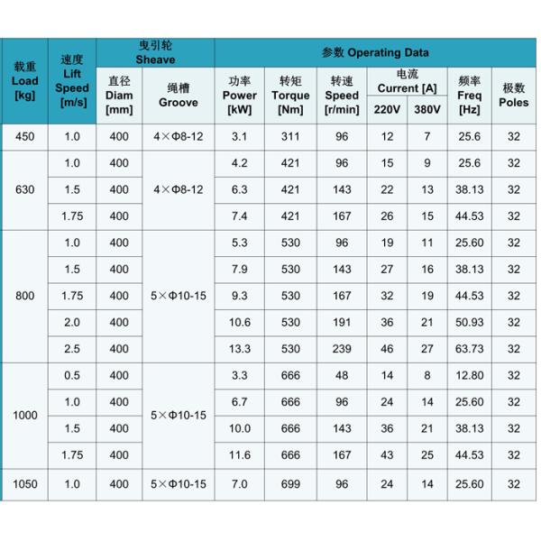 SN-TMS3TO Series Gearless Traction Machine Specification(Roping 2:1)