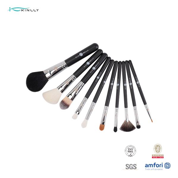 Synthetic Hair 10pcs SGS Cosmetic Makeup Brush Black Wooden Handle