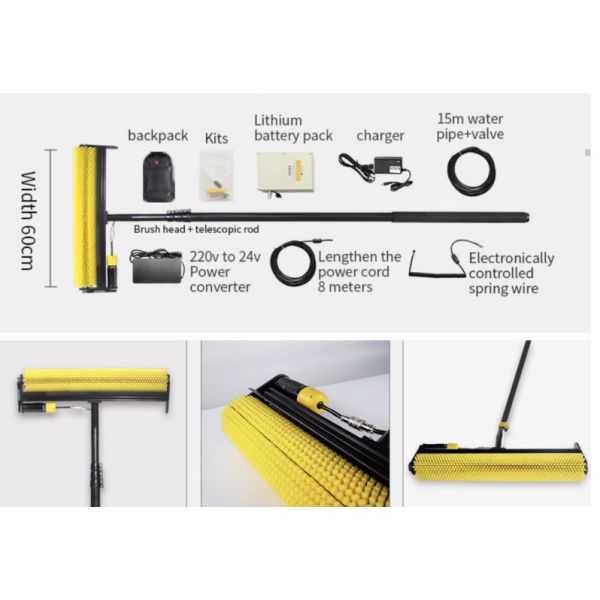 Photovoltaic Solar panel rotary cleaning robot Brush with lithium battery Manual rotating electric water / water free