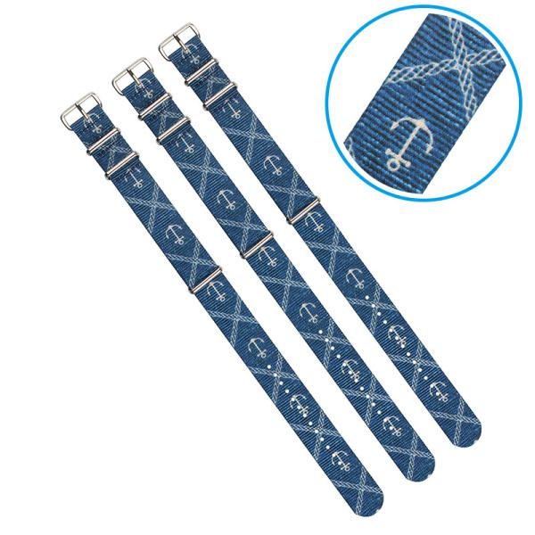 Navy Style Nato Print Nylon Strap Watch Bands With Blue Color