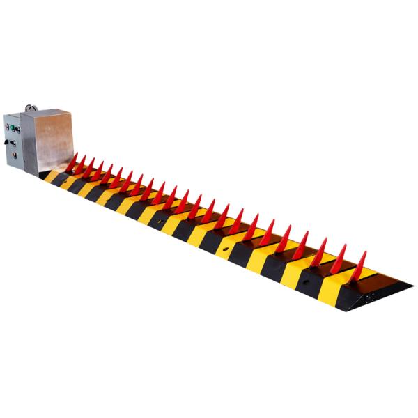 The tyre-killer is made of A3 steel and steel blade(Shape looks like speed bump). It adopts the mechanical and