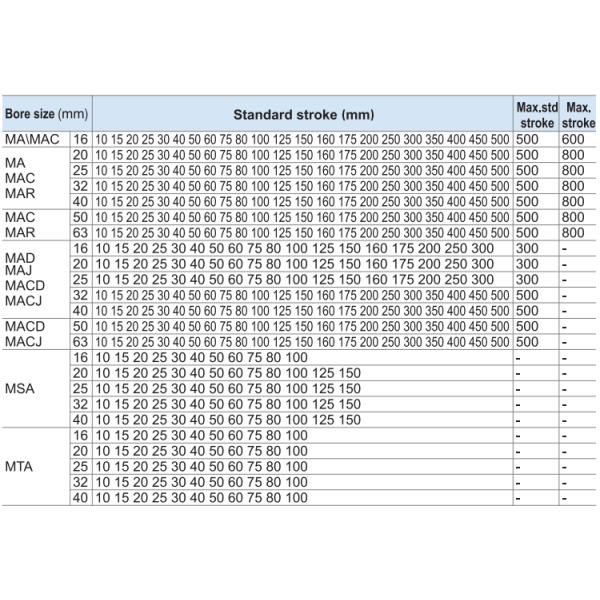 | MAC / MACD / MACJ | Double Acting with cushion | ||||||||